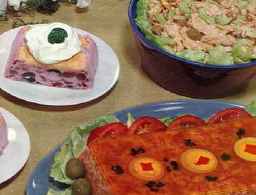 I am a huge fan of retro food recipes. The kitschy recipe books from the 1950s are pure crack for me. Some of the concoctions, while super sophisticated for their time, are the stuff of high camp now. And thank God--I adore them. While I can hobble a few funny pictures together for your amusement here, please visit the following links for the true masters. They have the dissertation of the retro cook book down utterly. Enjoy!